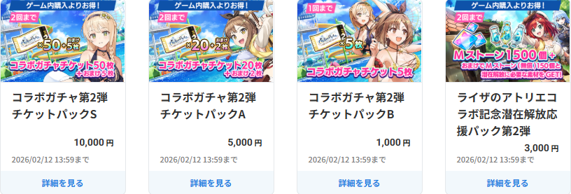 コラボガチャ第2弾チケットパックやライザのアトリエコラボ記念パック第2弾の販売を開始いたしました。