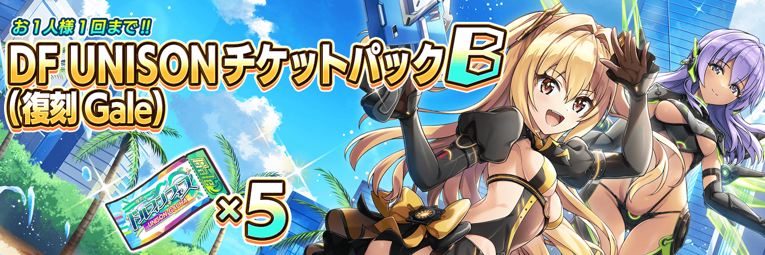 DF UNISONガチャチケット(復刻Gale)が5枚入手できます!