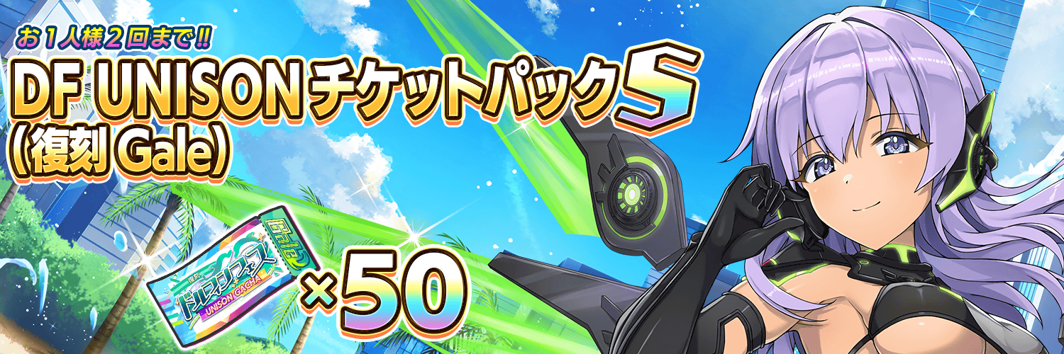 DF UNISONガチャチケット(復刻Gale)が50枚入手できます!