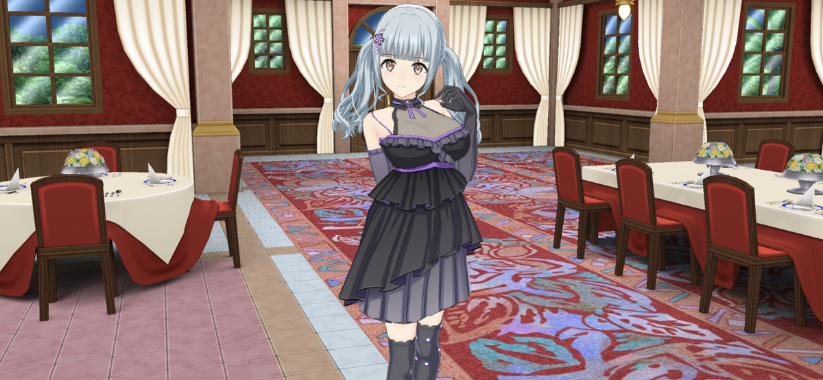 期間限定ショップ「ボスメダル(不撓不屈)」で入手できる「SSR 長土 萌依(アシンメトリードレス)」は、アシンメトリードレスの衣装がついてきます。