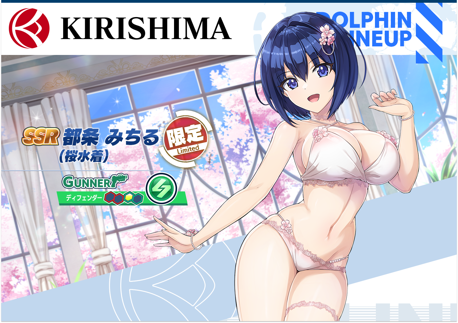 ※「SSR 都条 みちる(桜水着)」は、「桜水着限定ドルフィン確定ガチャ」以降のガチャラインナップには登場しません。