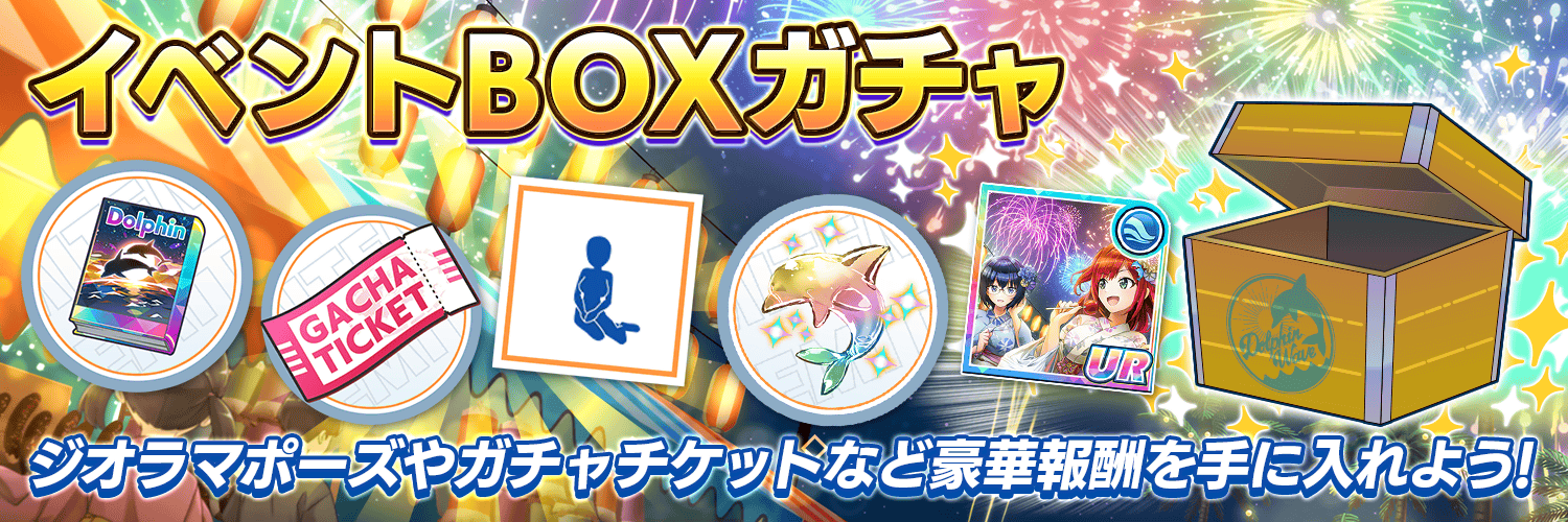 「イベントBOXガチャチケット(夏祭り)」をたくさんを集めて、報酬を獲得しましょう!